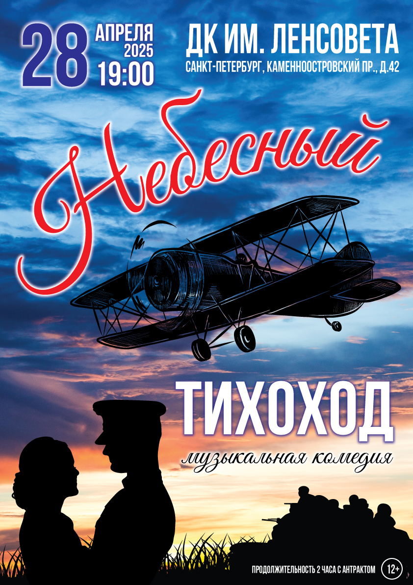 «Небесный тихоход» — яркое, красочное зрелище, созданное по мотивам классического советского кинофильма, с массовыми сценами, запоминающимися мелодиями, пронизанное весенними настроениями и любовью, выдержанное в мажорных, радостных тонах.