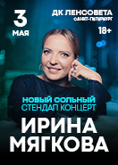 03 мая в ДК им. Ленсовета Ирина Мягкова представит зрителям новую программу: только свежие материалы, актуальные, злободневные шутки и 100% качественный юмор.