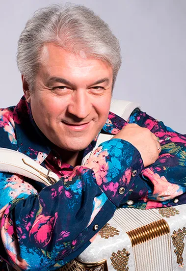 Баянист, объединяющий вокруг баяна профессионалов и любителей-музыкантов разных национальностей и культур. Постоянный соведущий-баянист популярной теле-программы Михаила Евдокимова “С лёгким паром!”, Андрея Малахова « Привет, Андрей!» теле и радио-ведущий, композитор, аранжировщик, киноактёр.