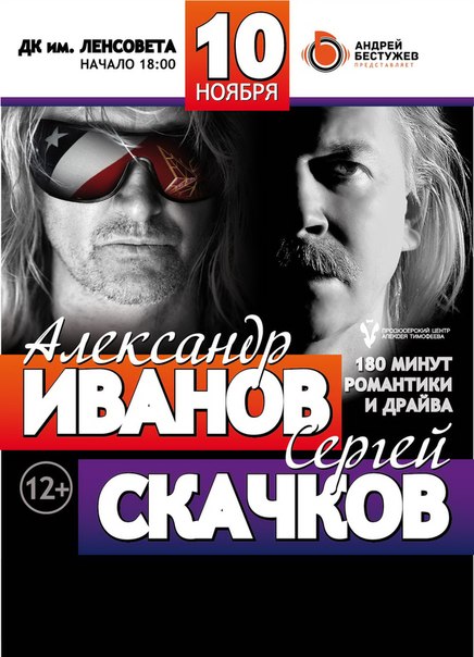 Уникальная трехчасовая программа. 2 отделения, 2 артиста, одна эпоха! Живой звук и всем известные слова, романтика и драйв, любимые артисты миллионов – Александр Иванов и Сергей Скачков.