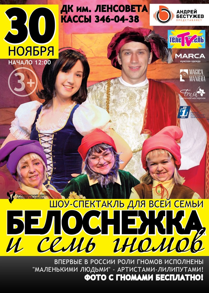 В спектакле “Белоснежка и 7 гномов” много танцев, песен, сказочных превращений, сценических эффектов. Действие получилось динамичным, веселым. Классическая музыка, яркие костюмы, и, конечно, герои волшебной сказки подарят заряд хорошего настроения и незабываемое удовольствие зрителям любого возраста.