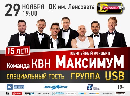 В этот день состоится юбилейный концерт "15-летие команды КВН «МаксимуМ»". Зрителям будет представлена новая программа «Здесь все!»