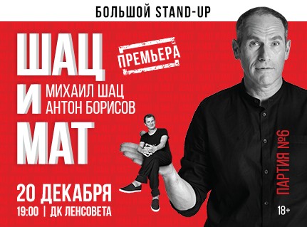 20 декабря в ДК им. «Ленсовета» Антон Борисов и Михаил Шац сыграют лучшую stand-up партию Петербурга. 64 светлые и темные истории двух друзей и соперников. Такие честные, что могут показаться вымыслом. Наполненные юмором так, что могут стать легендами. Противоположные на столько, что могут стать единым.