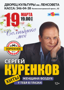 Сергей Куренков неисправимый романтик, искренне верящий в то, что миром правит Любовь. На концерте прозвучат любимые хиты артиста, а также состоятся премьеры новых песен. Поэтому временами обдумываю реакцию публики: голосования в хит-парадах, рейтинги, количество заказов моих композиций на радиостанциях и особенно реакцию зала. Для меня все это ценно и я рад, когда нахожу отклик в сердцах других людей. Я буду счастлив, если смогу привнести на нашу эстраду что-либо действительно интересное. Все будет хорошо!»