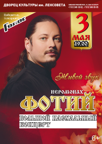 Триумфатор телепроекта "Голос", насельник Свято-Пафнутьева Боровского монастыря, регент монастырского хора, покоривший сердца миллионов своей простотой, искренностью и талантом, иеромонах Фотий выступит с программой "Большой Пасхальный концерт" 3 мая на сцене ДК им. Ленсовета.