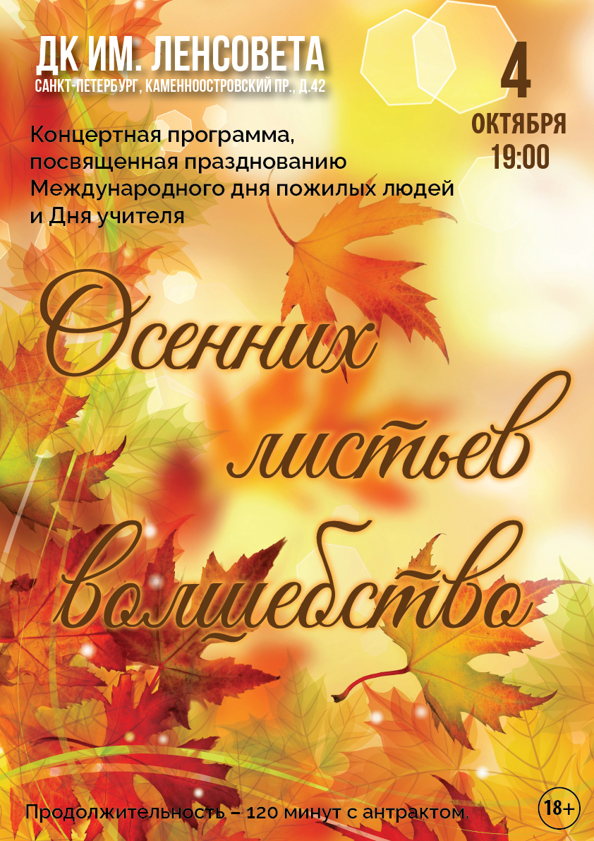 Приглашаем посетить осеннюю концертную программу и погрузится в атмосферу тепла и уюта в гостеприимном зале ДК Ленсовета.