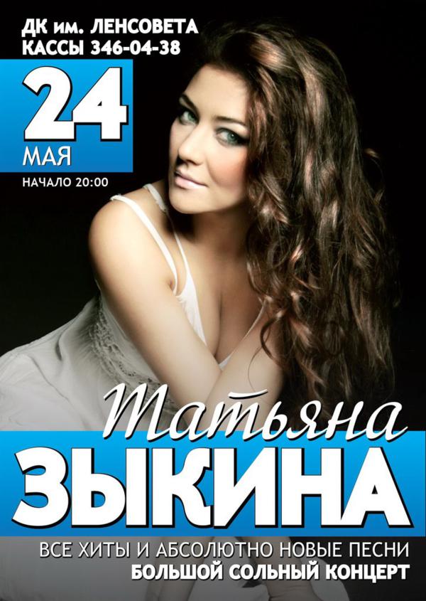 Ее называют певицей-явлением, ее хвалят и критикуют, сравнивают с другими и одновременно отмечают несомненную самобытность. Её “ощущение реальности” – это творчество: песни помогают ей разобраться с самой собой, они очень личностные, и в каждой из них глубокий самоанализ. Тексты ее композиций предельно искренни, а мелодии цепляют сразу и навсегда своей проникновенностью. Талантливая и молодая Татьяна Зыкина, не раз удивляла искушенную публику, так и 24 мая в ДК им. Ленсовета она намерена удивить вновь! Удивить абсолютно новыми песнями и любимыми многими хитами, большую часть из которых она исполняет вместе с залом. Удивить выбором места концерта – выбором зала с уникальным атмосферой и звучанием, и, может быть, впервые дать не клубный большой сольный концерт, где можно танцевать или сидеть и просто слушать!