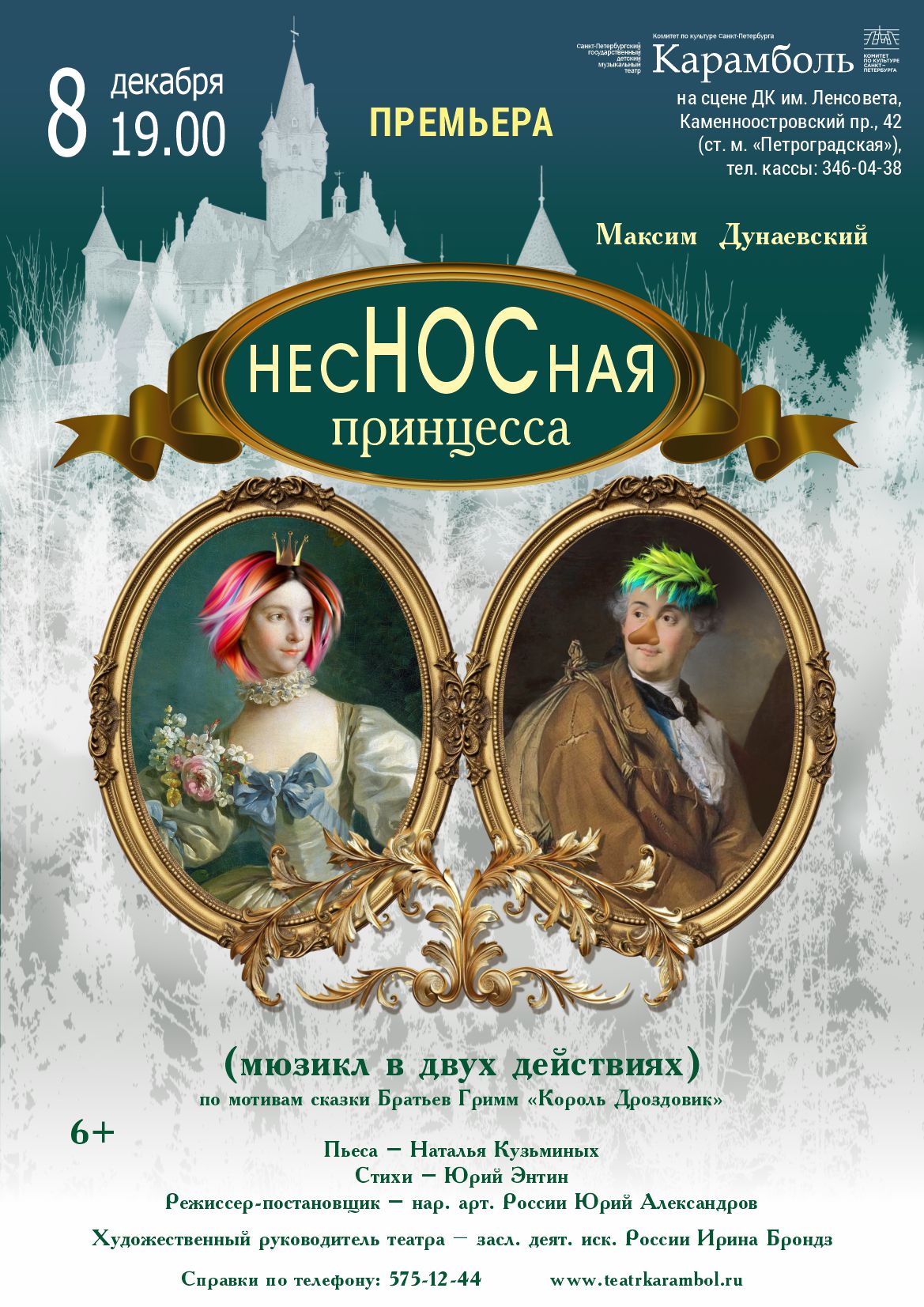 Музыкальный театр «Карамболь» — семейный театр, который в настоящее время показывает свои спектакли на двух театрально-концертных площадках Петербурга – во Дворце Искусств Ленинградской области и в Доме культуры имени Ленсовета. Удивительное сочетание драматического и музыкального искусства создает особую атмосферу постановок и придает яркость каждому проекту. Театр активно развивается, постоянно удивляя зрителей новыми идеями и зрелищными премьерами, став неотъемлемой частью культурной жизни северной столицы.
