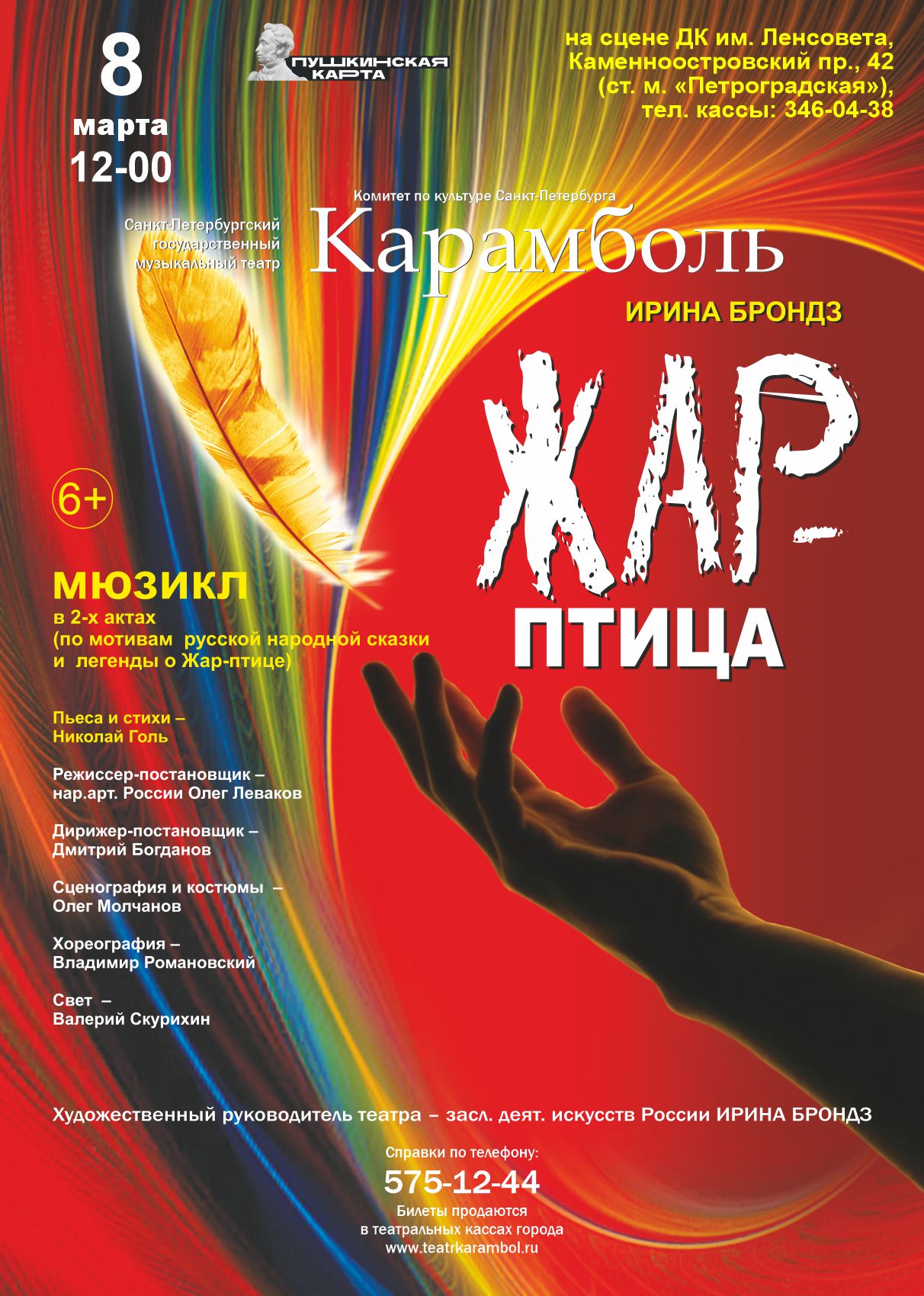 Золотой свет крыльев Волшебной Птицы одним вселяет надежду на обретение покоя, других – манит блеском богатства. Смешные и неожиданные ситуации, в которые попадают герои спектакля – лишь фон для понимания главного: если в душе твоей добро и любовь, значит Жар-птица где-то рядом…