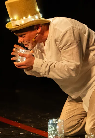 Особенность этого спектакля — участие актеров-музыкантов, которые не только воплощают яркие образы на сцене, но и создают живую музыкальную атмосферу, усиливающую эмоциональное восприятие.