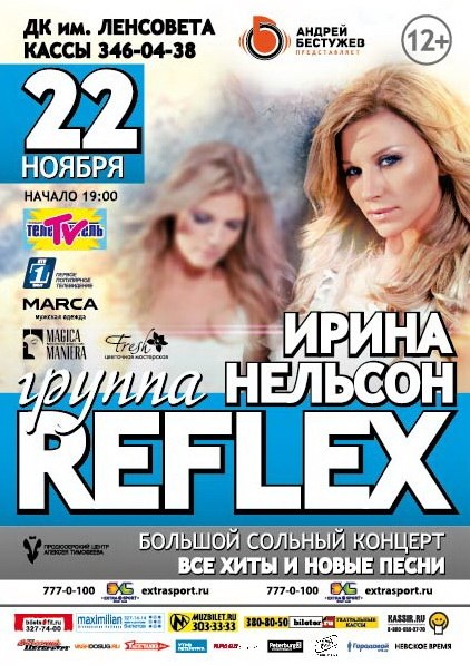 Грандиозное живое шоу, танцевальные композиции и мелодичные баллады, все знакомые хиты, отличный звук и позитивная энергетика в большом сольном концерте Ирины Нельсон и группы “Reflex”.