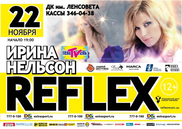 Зажигательные, по-европейски качественные танцевальные треки и пронзительные лирические композиции – визитная карточка Ирины Нельсон и группы “Reflex”. Их знают и любят уже целое поколение слушателей. Основой фирменного звучания “Reflex”, сделавшей группу столь любимой зрителями, всегда была и остается солистка и основатель коллектива - Ирина Нельсон. Ее вокал по праву считается самым узнаваемым голосом - его невозможно ни с кем перепутать, а внешность Ирины Нельсон всегда является образцом для подражания.
