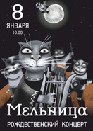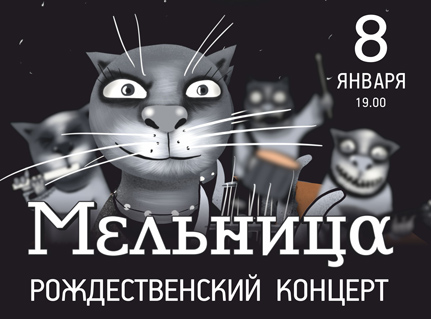 В этом году рождественский мини-тур «Мельницы» охватит территорию от Сибири до Украины. Известный художник Вася Ложкин создал специально для артистов праздничную афишу, на которой изобразил их в виде своих фирменных котов. Такой и будет рождественская программа - праздничной, легкой и немного ироничной!