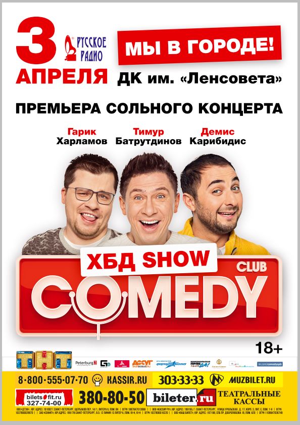 Увидеть совершенно новую программу трио «ХБД», а также полюбившиеся всем номера, можно будет 3 апреля в ДК Ленсовета. Если вы хотите променять хандру на заряд бодрости и позитива, то советуем вам заранее позаботиться о билетах. Количество мест строго ограничено!