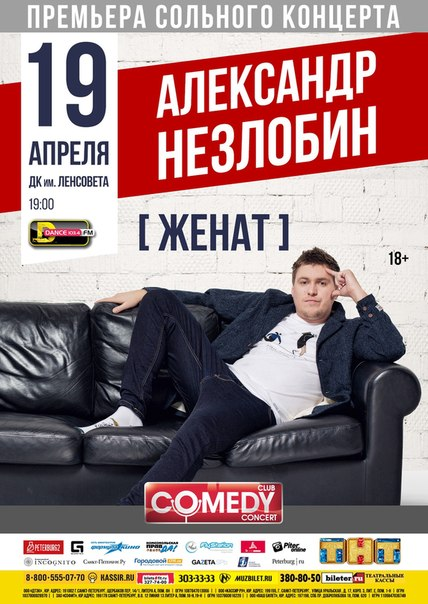 19 апреля 2015 года на сцене ДК Ленсовета состоится сольный концерт Александра Незлобина под названием «Женат».