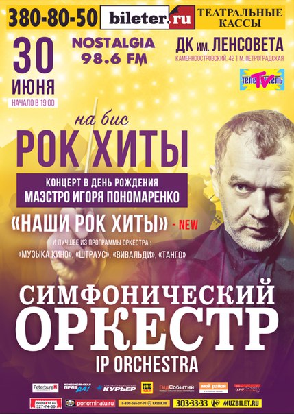 30 июня 2016, в 19:00, в Санкт-Петербурге на сцене ДК им. «Ленсовета» для истинных ценителей рок-музыки пройдёт концерт на БИС Санкт-Петербургского симфонического оркестра IP Orchestra!
