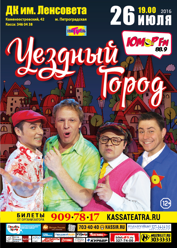Коллектив «Уездный город» создан в 1999 году, как команда КВН. Они шутят, импровизируют, исполняют скетчи, танцуют, поют и даже играют на музыкальных инструментах (хоть и не учились этому - тем смешнее!) - и все это легко, сочно, веселясь сами и заражая весельем зрительный зал. За период выступления в КВН они не по одному разу завоевали все призовые места и награды. Они востребованы, как артисты кино, театра, телеведущие, участники популярных телешоу. В программу концерта вошли, как новые номера, так и самые любимые из уже известных.