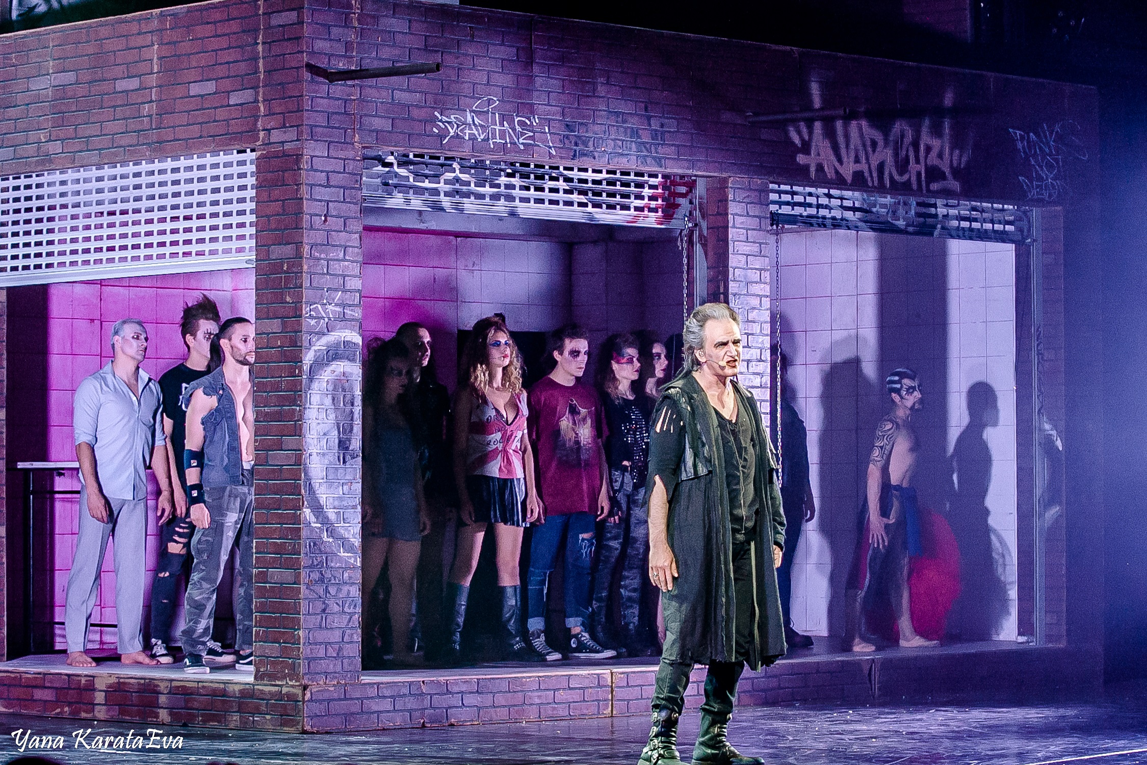 Под руководством режиссера Владимира Золотаря артисты мюзикла «Тodd» трансформируют привычные театральные стандарты, смешивая в одной постановке элементы балета, паркура, граффити, классического мюзикла, рок-оперы и мистерии в присущей группе «Король и Шут» гротескной манере. Музыканты «Король и Шут» исполняют песни из альбомов «Todd. Акт 1. Праздник крови» и «Todd. Акт 2. На краю», а Александр "Ренегат" Леонтьев, вокалист и гитарист группы "Северный флот" - роль рассказчика. Владимир Дыбский, известный по мюзиклам "Граф Орлов" и "Монте Кристо", выступает в роли священника. В спектакле занято более сорока человек, - для них сшито более 200 костюмов. Декорации созданы специально для паркур-трюков и оформлены известным стрит-арт художником Павлом P183, ушедшим из жизни в возрасте 29 лет, - также, как и Михаил Горшенев, спустя год после премьеры зонг-оперы.