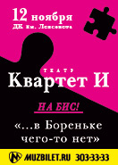 Итак, 12 ноября приготовьтесь к авторскому «квартетовскому» психоанализу: ждем вас на спектакле «… в Бореньке чего-то нет» в ДК им. Ленсовета.