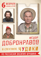 В основу спектакля положены девять рассказов русского режиссера и писателя Василия Шукшина, девять рассказов — девять ролей Фёдора Добронравова. В первом действии зрители увидят сценическое переложение рассказов «Чередниченко и цирк», «Космос, нервная система и шмат сала», «Экзамен», «Микроскоп» и «Миль пардон, мадам», во втором – рассказы «Верую!», «Приезжий», «Непротивленец Макар Жеребцов» и «Коленчатые валы».