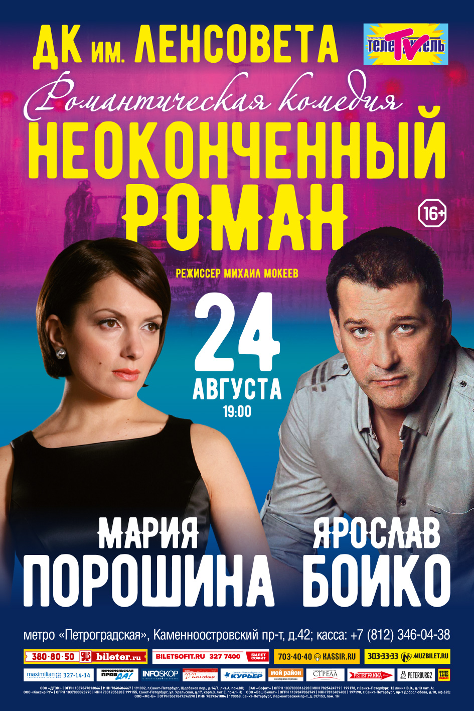 Блистательная игра любимых артистов, романтическая история, красивая музыка, свет и декорации сделают вечер, проведённый на спектакле "Неоконченный роман" просто незабываемым и интересным как женщинам, так и мужчинам.