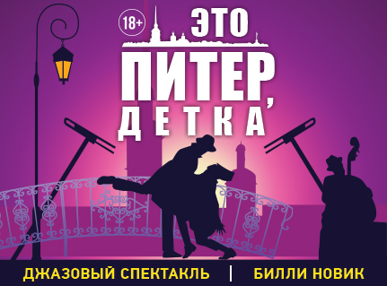 «Это Питер, детка!» - первый в Петербурге джазовый спектакль с участием знаменитого джазмена Билли Новика. Премьерные показы, которые каждый раз проходят с оглушительным успехом, продолжаются! В преддверии нового года нашумевшая постановка будет вновь показана на сцене ДК им. Ленсовета и её смогут посмотреть все, кому ещё не удалось попасть на летние показы.