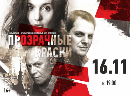 Музыкально-драматический спектакль «Прозрачные краски» основан на сюжетах литературных произведений первой половины 20 века. Это исследование всё тех же вопросов о сущности любви, морали, нравственности и человечности, но погруженное во времена триумфального шествия кинематографа, в период расцвета музыки, живописи и литературы. На острие столкновения двух эпох зритель следит за страстной, резкой, остроумной и, в то же время, трагической историей трёх героев. Вокальные и пластические рисунки становятся отражением внутренней жизни героев в тот самый миг, когда причудливая оптика судьбы соединяет их в одной точке.
