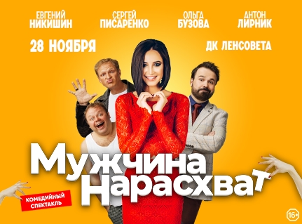 Хотите узнать, что случится с героями? Тогда успейте купить билеты на спектакль «Мужчина нарасхват»! Взрыв эмоции и заряд хорошего настроения обеспечены! Подарите себе яркий вечер юмора!