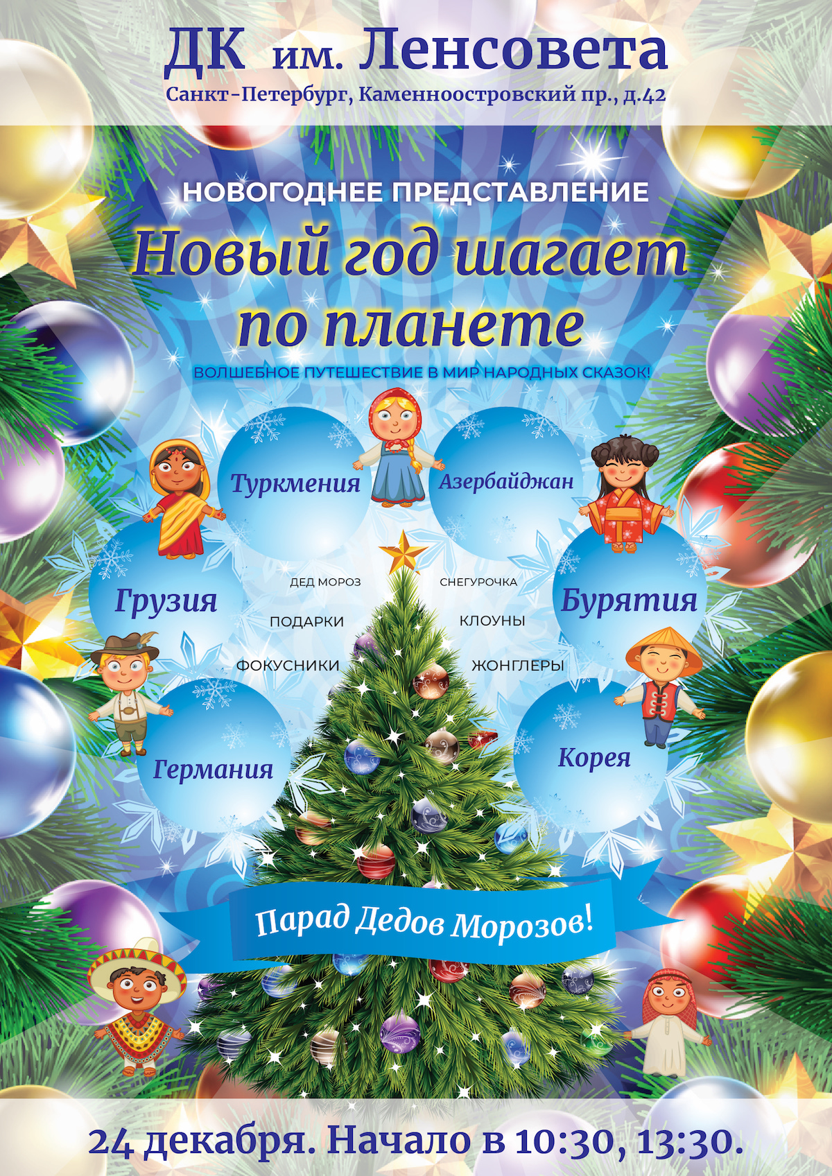 Яркое, сказочно-феерическое и увлекательное новогоднее представление для детей и их родителей «Новый Год шагает по планете!».