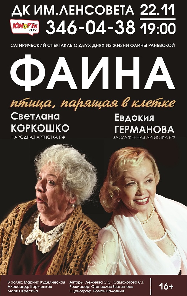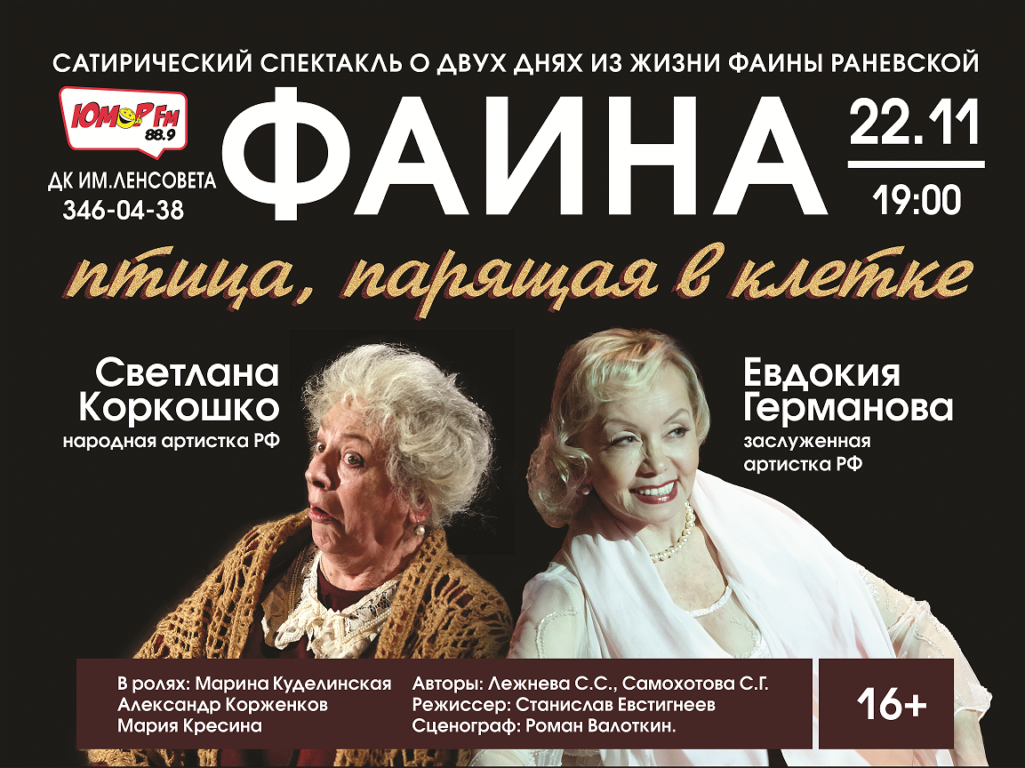 Сатирический спектакль о двух днях жизни Фаины Раневской и Любовь Орловой.